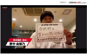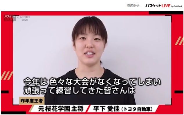 「今年はいろいろな大会がなくなってしまい、頑張ってきた皆さんはとても悔しい思いでいっぱいだったと思います。私自身、ウインターカップを優勝するために、キャプテンとしてチームが1つになるよう、細かいところまで気を使い、声をかけていました。今年のウインターカップは悔しい思いを爆発させ、悔いの残らない大会にしてください」