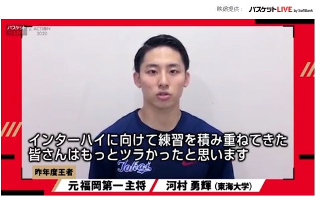 「今年の夏のインターハイが中止になったことを聞いて、僕も本当にショックでした。インターハイに向けて練習を重ねてきた皆さんはもっとツラかったと思います。今回のウインターカップではその夏への思いを込めて、今まで以上に白熱した試合になることを楽しみにしています」