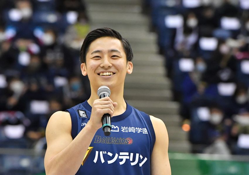 会場のモニターでサプライズが発表され、大きな拍手が巻き起こった横浜国際プール。背番号「0」の青いユニフォームをまとった河村がゆっくりとフロアに現れると、その拍手は一層強まった。ブースターに向けて、河村は一度は噛んではにかみながら挨拶をやり直す場面がありつつも、「プレーする機会を与えてくださった横浜ビー・コルセアーズの関係者の皆さん、本当にありがとうございます。自分の持てる力を精いっぱい発揮して、チームの勝利に貢献できるように頑張ります。自分の見てほしいポイントは3Pシュートと仲間を生かすアシストです。このクラブとともに成長して、将来は日本を代表するPGになれるように頑張っていきたいと思います」と力強くコメント。