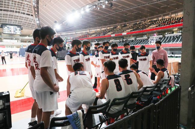 試合の方は、「最初は緊張して、浮いている部分がありました」ということもあり1Qは25‐27と奈良育英(奈良)にリードされるが、「次第にいつもどおりのプレーができるようになりました」と#6立石だけでなく落ち着きを取り戻した佐世保工メンバー。チームのテーマである平面でのスピードを生かした“走破”でリズムをつかむと2Qを終えて51‐34とリードに成功。