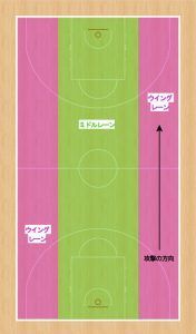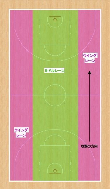 ①ミドルレーン ②ウイングレーン(左) ③ウイングレーン(右)