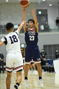 その流れが一気に逆のセンターサークル側に変わったのは、残り5分2秒でセンターサークル#5近藤が3Pを決めてから。これで51‐58と9点差に縮めたセンターサークルは、その後の約2分間、失点を0に押さえる一方、攻めては#4松岡、#18廣瀬、#5近藤がファウルで得たフリースローをきっちり決めるなどし60‐58と逆転。フリースローの大切さを表す追い上げ劇となった。