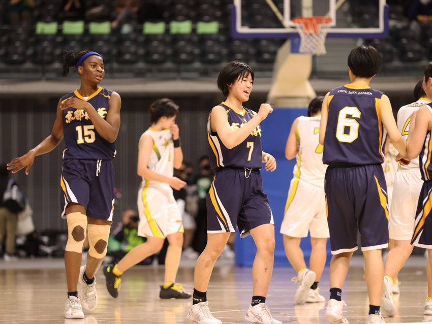 4Qに入ると早々に京都精華が逆転し、このタイミングで下妻がタイムアウトを取るも時すでに遅し。これ以降、京都精華が再逆転を許すことはなく、残り1分25秒には山西がダメ押しとなる3Pシュートをヒットし、最終スコア83-70。最後の10分間で33-10と圧倒した京都精華が準決勝進出を決めた。