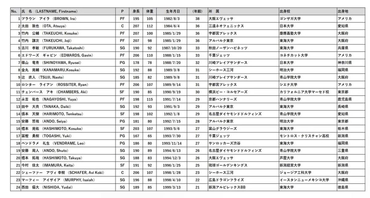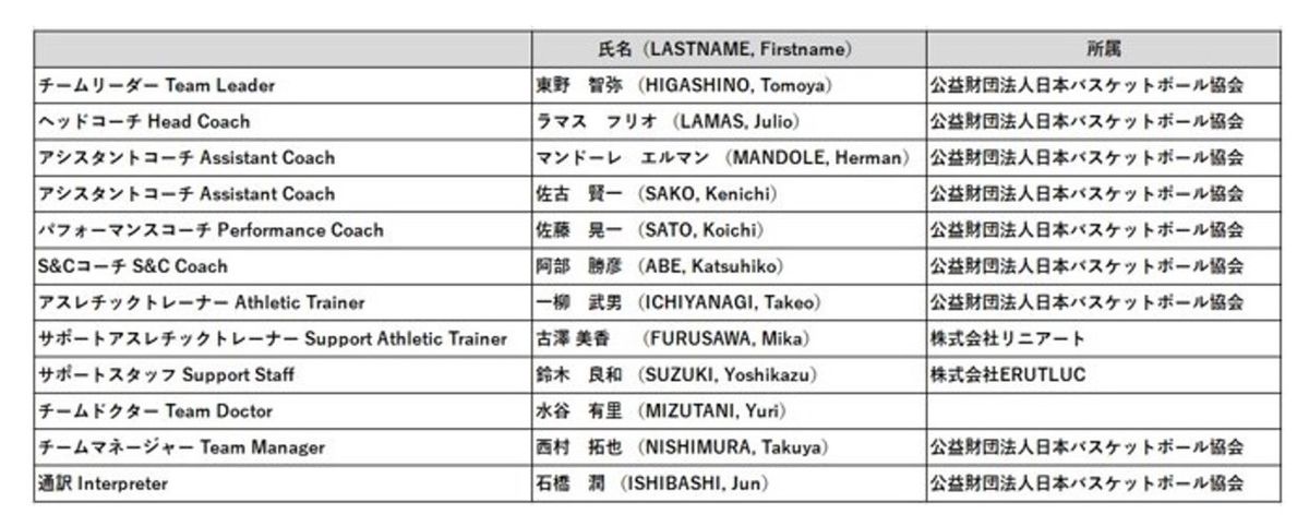 なお、本大会への情報管理の観点から、遠征参加メンバーリストの公表は JBAからは行われない。男子日本代表は11日から味の素ナショナルトレーニングセンターで行われる強化合宿を経て、14日(日)未明にチーム専用チャーター便にてドーハへ出発予定となっている。