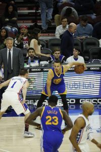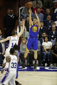 <NBA座談会> Part.3 NBA Finals2017 勝敗予想 6月号から2号にわたって掲載しているNBA座談会。今回は、NBAファイナル開幕直前ということで、キャバリアーズ対ウォリアーズのファイナル勝敗予想を紹介します。 写真=石塚康隆 <座談会参加メンバー> A=本誌NBA担当。観戦歴は約22年。M=グリズリーズを中心としながらも、NBA全般の情報収集にもたけている。Y=NBAの知識が豊富。選手のクセや特徴を把握した発言で核心を突く。B=セルティックスへの愛情は相当なもの。他チームは対戦相手として頻繁にチェックD=自他共に認めるマブスファン。選手やコーチのコメントを読み取って説明するのがうまい。 ファイナルMVPはクレイ・トンプソンと予想 Y 僕の予想は4勝2敗でウォリアーズ。ファイナルMVP予想は クレイ・トンプソンです。将来的にも、カリーはファイナルMVPを獲らないような気が しています。もし去年、ウォリアーズが勝っていたら、ファイナルMVPはグリーンです よね。それが何かこう、今年もそんな感じじゃないかな、と思うんです。カリーが シューティングの時にふざけていることがあっても、(ボールを)置いておいて何か 別のことをしようとしていても、彼はひたすらシューティングしています。ウォリアー ズはまるでオールスターチームみたいなロスターなのに、『彼は真面目だなぁ』と いうのがありますので、クレイにMVPを獲ってほしいな、って思います。 B あのチームで一番ヤバそうなのはトンプソンですよね。 Y ゾーンに入った時は一番怖いですよ。ほかのチームに行ったら、絶対エースです もん。一番我慢しているんじゃないかな、と思います。 B 10何回かしかドリブルをしていないのに、60得点する男ですからね。 D 1Qに40得点しろ、と聞いて誰にベットするかと聞かれれば、 (カリーではなく)トンプソンですよね。