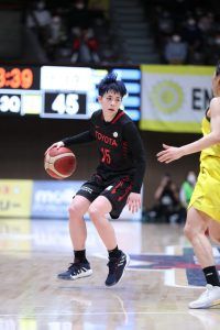 トヨタ自動車に入った当初は、人と比べたり、『私はシュートができないから』と思ったり、一つミスをすると考えすぎたりしていました。でも年々、少しずつ『人と比べるのではなく、私のできるプレーをしよう』と思えるようになりました。『あの選手にはこういうプレーがある。この選手にはこういうプレーがある。そして私にはこういうプレーがある』と考えられるようになったんです。自分ができないことをカバーしてくれるチームメイトがたくさんいるので、もちろん修正することは必要ですが、チームに頼りながら、うまく私らしいドライブやアシストをして、それに加えて磨いている3Pシュートを決めていければと思っています。こういう髪型もしていますし、誰とも比べない私らしいバスケットをしていきたいと思っています。