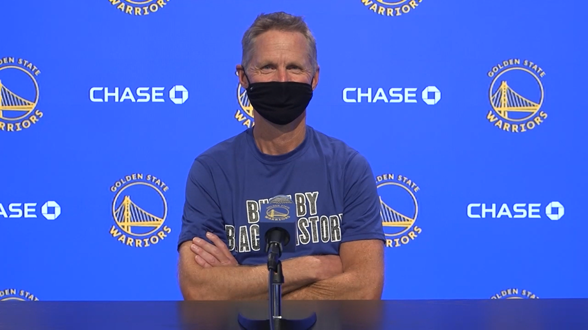 試合前の会見でウォリアーズのスティーブ・カーHCは、八村について「彼は強くて身体能力が高く、スターター入りもうなずけます。若手の有望株ですからね。才能豊かなプレーヤーです」と高い評価とともに警戒感を語っていた。「プレーぶりを見るとミドルレンジのショットがうまくゴール周辺で爆発的なプレーをしています。オフェンスリバウンドを獲られないようにして、トランジションでも簡単に得点させないよう気をつけます。できるだけ外から打たせたいですね」というのがカーHCの八村評。彼自身による英文での返答は以下のような流れだった。