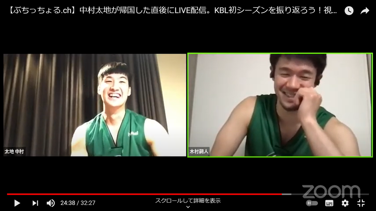 韓国プロバスケットボール・リーグKBLの原州DB PROMY(ウォンジュ・ディービー・プロミ)で1シーズンを過ごした中村太地が4月9日に帰国し、YouTubeライブ配信でファンに向けた報告を行うとともに、オンラインでメディアの取材に対応した。