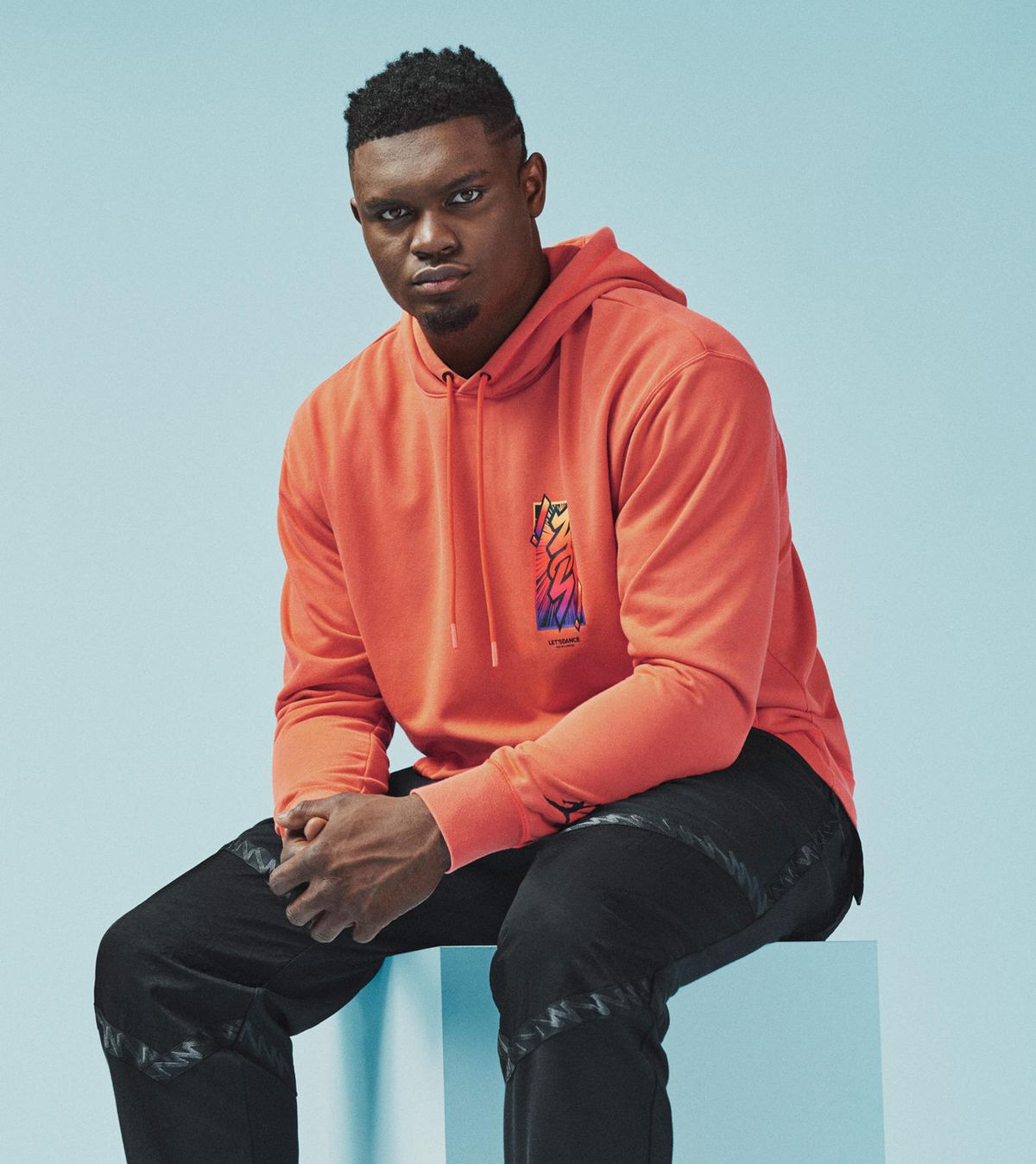 この他、ジョーダン×ザイオンアパレルコレクションとして、メンズ メッシュ ショートパンツ(8,800円)、メンズ パフォーマンス フリース パーカー(9,900円)、メンズ フリース パンツ(15,400円)が展開される。こちらは、アニメ調の腕の筋肉やエクスクラメーションマークなどのグラフィックが施されているが、これはアニメ好きのザイオンの意見を取り入れつつ、彼の宇宙人的な能力を表現したもの。次世代を担うザイオンらしさが前面に出たデザインになっている。