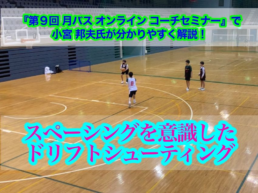 第9回は小宮 邦夫氏(D-EQUIPOコーチ/元アイシンシーホース)が再登場! 4月29日(木・祝)20:00~ZOOMミーティングによるオンラインセミナーを開催する。テーマは「スペーシングの考え方」や「スペーシングの練習方法」などについて。小宮氏は「U15やU12でもバスケットボールに必要なスペーシングは感覚的に身に付けておくほうが良い」と、さまざまな練習方法でアンダーカテゴリーのプレーヤーたちに指導している。