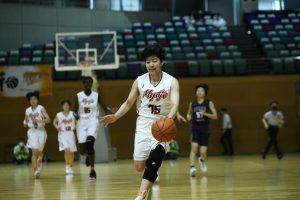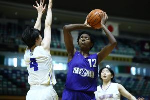 しかし、昭和学院はクランシーがゴール下を守りつつ、個々の機動力と連携の精度の高さを生かしてメンバー全員が積極的にシュートを狙い、終わってみれば♯4⻄ファトゥマ七南、石橋、♯7田中真弥、♯8花島百香、♯9⽥嶋優希奈、そしてクランシーの6人が2桁得点を挙げ、96‐80と前半のリードを守る形で試合を制した。