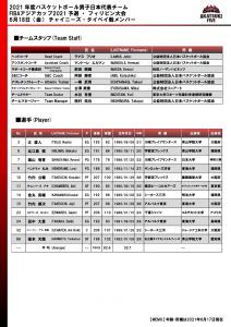 FIBAアジアカップ2021 予選:6/18 チャイニーズ・タイペイ戦 日本代表メンバー表(JBA)