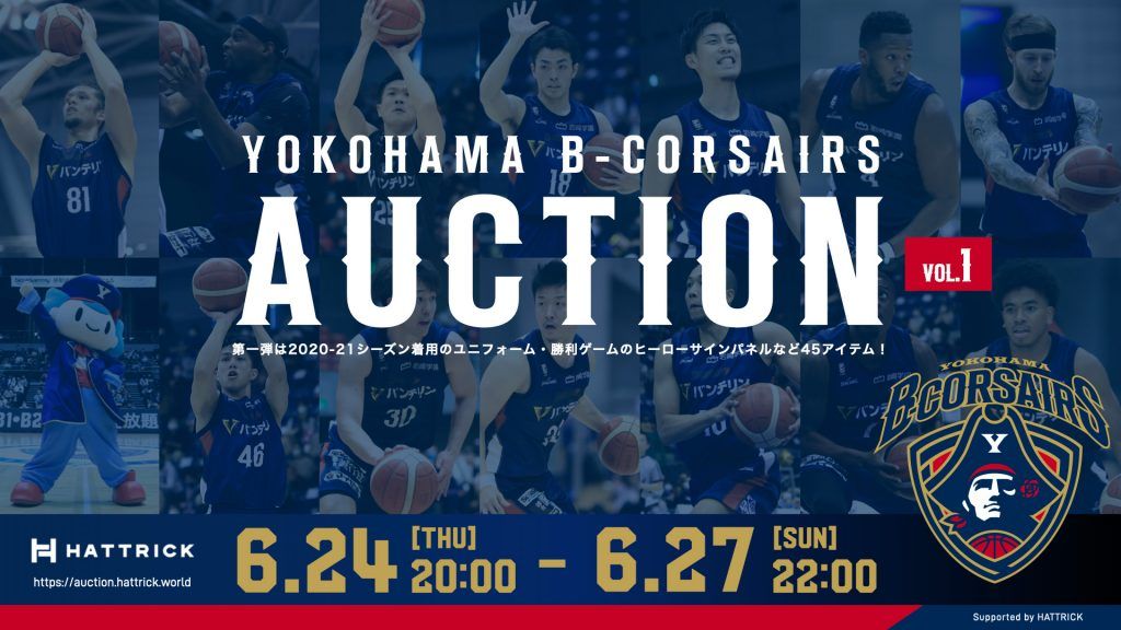 横浜ビー・コルセアーズが、B.LEAGUE2020-21シーズン中にプレーヤーが着用したユニフォームやプラクティスウェア、勝利したゲームにおけるヒーローサインパネルなど、全89アイテムを出品するオークションの開催を発表した。このオークションは、スポーツ専門公式オークションサービス『HATTRICK(ハットトリック/運営: デュアルキャリア株式会社およびバリュエンスジャパン株式会社)』にて行われる。
