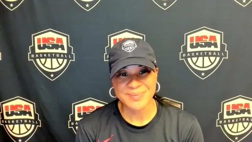 来日後最初のズーム会見に登壇した女子アメリカ代表のステイリーHC(写真/©USA Basketball)