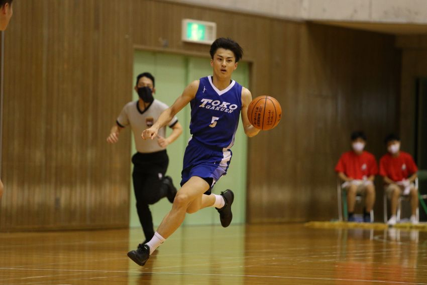 「出だしは自分たちの堅守速攻というカラーが出せずに、3年生の自覚が足りませんでした。昨年はインターハイが中止で、ウインターカップも辞退という形になってしまって…。それなのに、いろいろな人に支えられているという感謝の気持ちが足りませんでした」とエースガードの#5谷口律は前半の戦いを振り返る。
