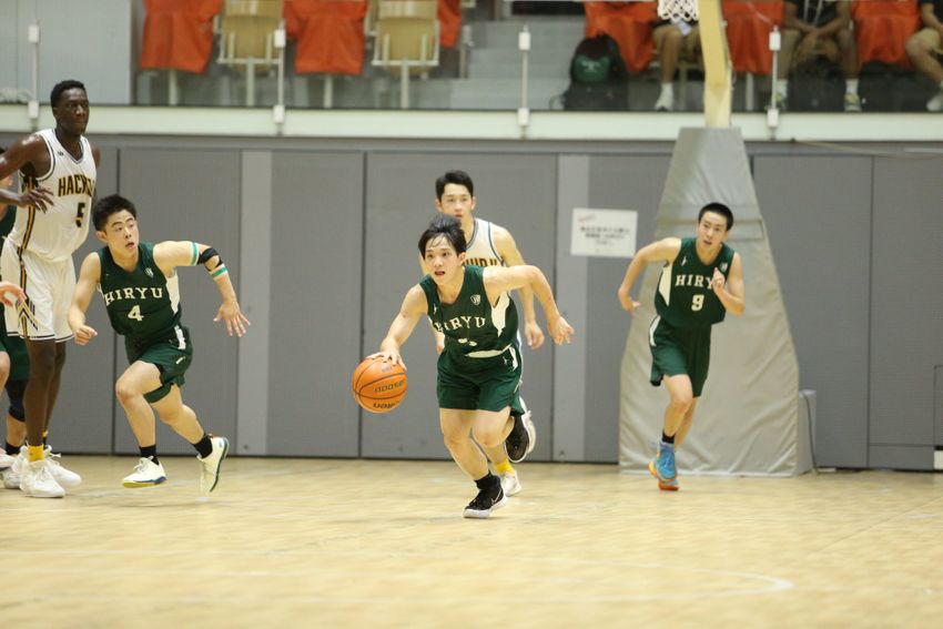 この試合では高さに勝る八王子に対して序盤から激しいクロスゲームを展開し、前半は35-38。後半に入っても一進一退の攻防が続いた。しかし、ここで抜け出したのが飛龍だった。好調の#9畑尻祐哉が3P、フローター、ミッドレンジジャンパーと連続得点で逆転に成功すると、4Qには#4坂田のスティールを#4山本がつなぎ、最後は#6庄司空人がレイアップ。直後には#5山本が追加点を挙げて9点のリードを奪った。
