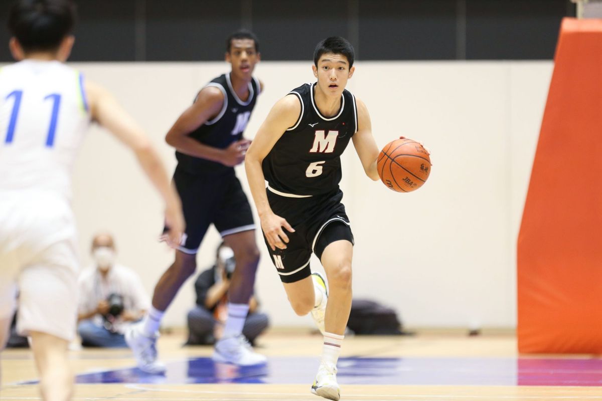 サイズの利を生かしてディフェンスリバウンドを確実に抑え、少ないチャンスの中で#10菅野ブルースらがイージーバスケットを演出。#6内藤晴樹も効果的なミッドレンジジャンパーを沈め、1Qは明成が2点のリードとした。