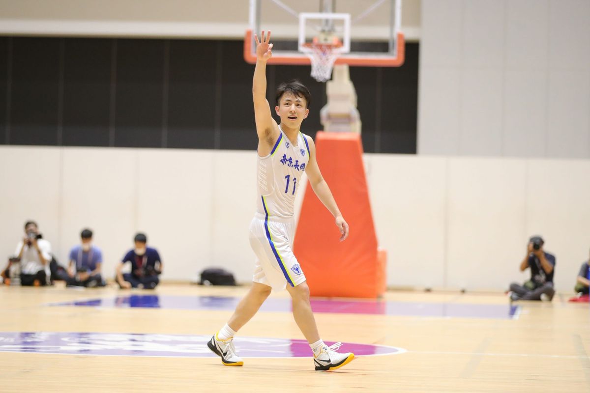 明成のディフェンスに対して果敢にペイントアタックをしていた帝京長岡だったが、最後に試合を分けたのは#11大月の3Pだ。「ドライブが何回も失敗していて中が狭いと思ったので、外から打とうと思いました。思い切り、入ると信じて打ちました」と、ゾーンの縫い目に生まれた一瞬の隙を突いてトップから放った3Pは、綺麗な放物線を描いてリングに吸い込まれた。残り17.7秒で帝京長岡が1点リード。
