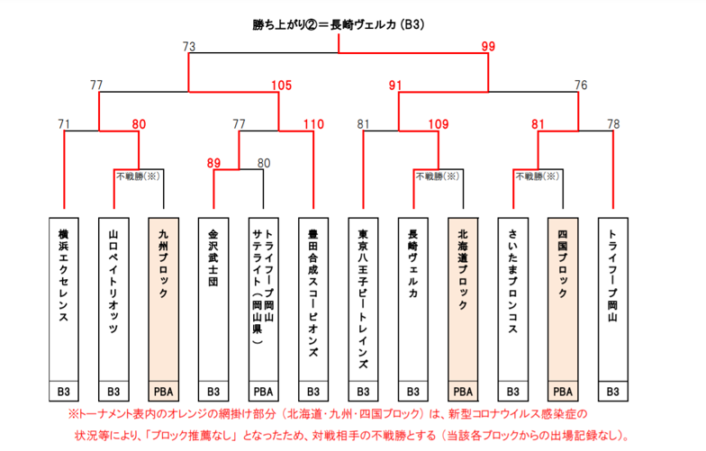 9月23日まで無観客で開催されていた第97回天皇杯 全日本バスケットボール選手権大会2次ラウンドは、最終日に7回戦の豊田合成スコーピオンズ対長崎ヴェルカ戦が行われ、99-73で長崎ヴェルカが勝利し、本年10月30日(土)から11月2日(火)に開催予定の3次ラウンド(佐賀会場)への進出を決めた。