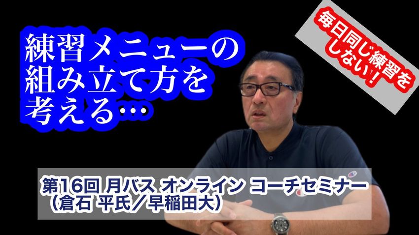 第16回は、倉石 平氏(早稲田大スポーツ科学学術院教授/元男子日本代表ヘッドコーチ)が登場! 10月24日(日)20:00~ZOOMミーティングによるオンラインセミナーを開催する。テーマは“チームをどのようにして目標に向かって進ませれば良いのか?”などについて。「毎日、同じ練習メニューではダメです。それは練習前のウォーミングアップも同じです」と、倉石氏。第14回で最も反響のあった内容を取り上げ、さらに深堀! 日本代表やトップリーグ、そして大学男女など、豊富な指導経験に基づいたフィロソフィーを解説していただきます。(※次回はJBAリフレッシュ研修会ではありません)