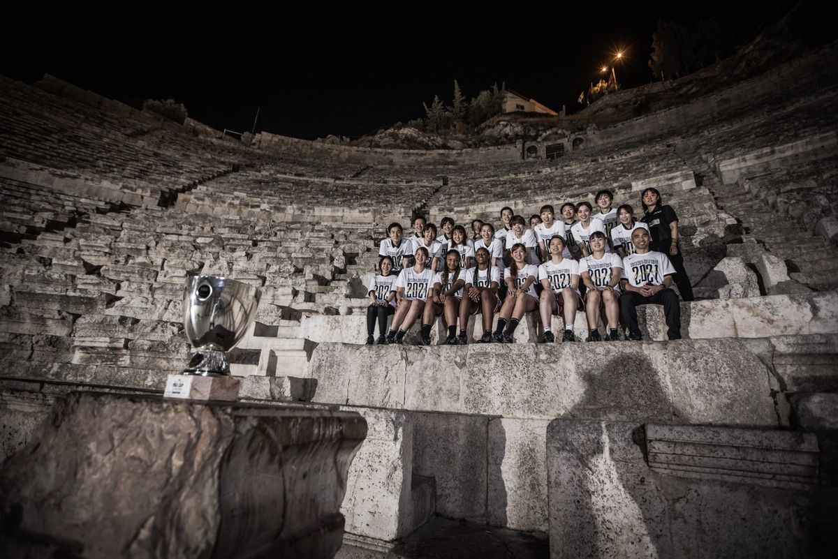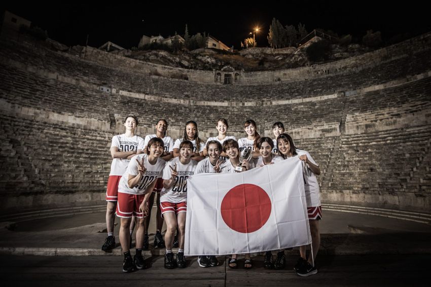 ここで紹介している写真は、決勝戦後にアンマンの観光地として名高いローマ円形劇場(ローマ帝国が統治していた当時の遺跡)で撮影されたもの。静かな闇に輝く勝利の笑顔。バスケットボールの女神たちの幻想的な美しさがとらえられている。