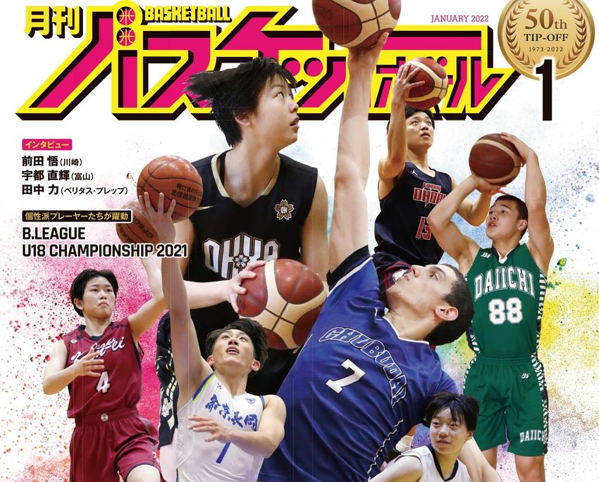 レバンガ北海道U18が優勝を飾ったB.LEAGUE U18 CHAMPIONSHIP 2021のレポート、8月の全中で同時優勝を飾った4校=八千代松陰(千葉)/白新(新潟)/本山南(兵庫)/西福岡(福岡)のチーム訪問、2017年に史上最年少の15歳5か月で日本代表候補に選ばれ、様々な苦難に直面しながらアメリカでの挑戦を続ける田中力のインタビューにも注目。また、連載2回目となる「アイドル × バスケ2」にはAKB48の濵咲友菜さんが登場。