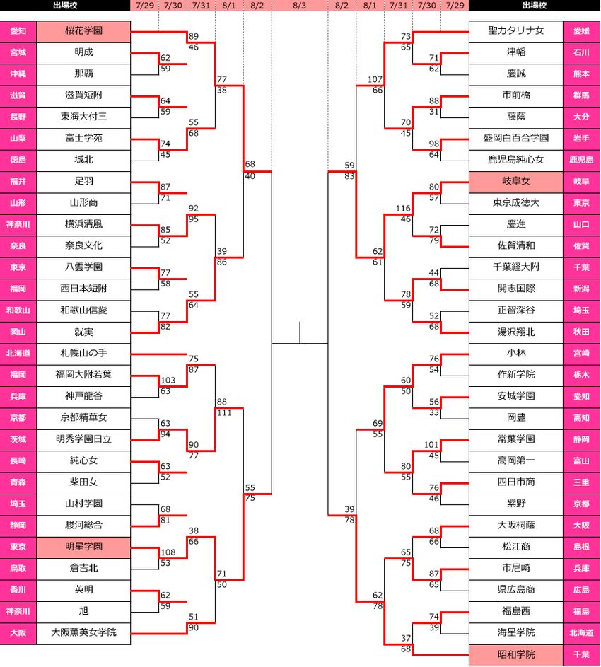 桜花学園 68-40 就実 明星学園 75-55 明秀学園日立 岐阜女 83-59 聖カタリナ女 昭和学院 78-39 小林