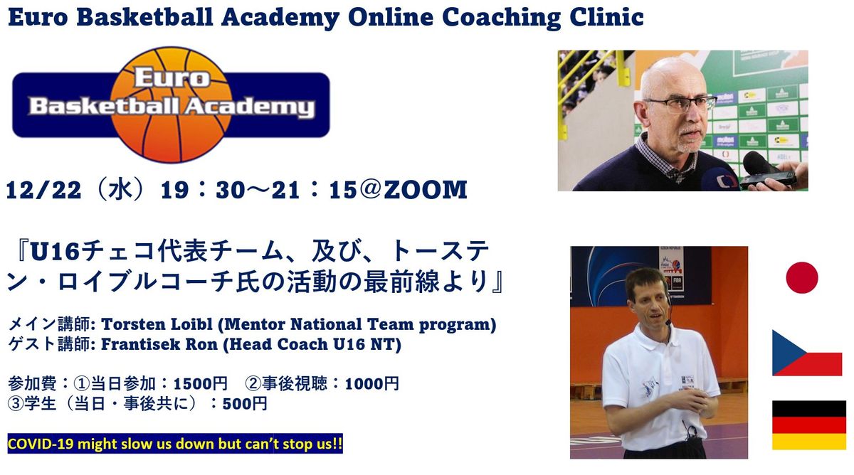 12月22日(水)19:30~21:15、トーステン・ロイブル氏がZoomでのウェビナー「Euro Basketball Academy Online Coaching Clinic」を開催する。