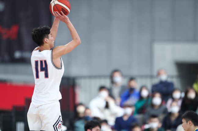 新チームに代替わりし、2年生になった湧川は、かつて杉浦佑成(三遠)や横地聖真(筑波大)らが着けてきたエースナンバー“14”を片峯コーチから託された。そして「一つ一つのプレーに背番号の重みを感じながら、責任感を持って戦っていきたいです」と固く決意。