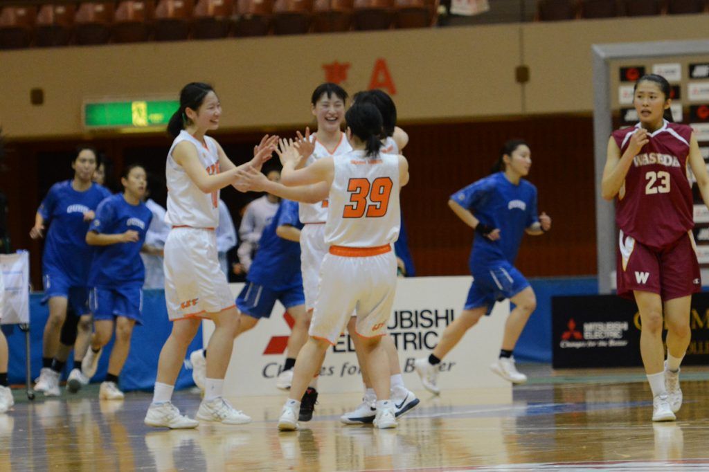 大学日本一を決める全日本大学選手権大会(インカレ)は、男子が閉幕してまもなく、11月28日から女子が開幕。大会4日目の本日12月1日は、カメイアリーナ仙台にて準々決勝の4試合が行われた。 3−21の入りから白鴎大が大逆転! 鹿屋体大も2試合連続の金星!! 第一試合から、前年覇者の白鷗大 vs. 西日本女王の愛知学泉大というハイレベルな注目カードとなったが、先に主導権を握ったのは愛知学泉大。攻撃的なディフェンスで相手のミスを誘い、オフェンスでは㉑谷口を起点に快調に得点を重ねる。リバウンドも掌握して、1Qには一時21−3と大量リードを奪った。一方、白鷗大も黙ってはいない。ディフェンスを立て直して追い上げ、前半を終えて11点差に。 勝負どころとなったのが3Q。足が動くようになった白鷗大は、ディフェンスとリバウンドの徹底によってこのQの失点を僅か6点に抑える。その間に⑳ソファナ、④星の連続バスケットカウント、⑱軸丸の3Pシュートと、たたみ掛けるように得点を挙げて逆転し、8点リードで入った4Qもリードを守り切って大きな一勝を挙げた。 また第二試合では、前日の3回戦で関西1位の大阪人間科学大を破り勢いに乗る鹿屋体大(九州2位)が、関東4位の専修大を69−64で撃破。2005年に準優勝したとき以来のベスト4進出となり、うれし涙を流した。専修大は大黒柱の㉗小笠原の欠場も手痛く、全員が思い切り攻めてくる鹿屋体大を止められなかった。 拓殖大が早稲田大を下して壁を破る 東京医療保健大は盤石の形で4強へ 第3試合は、優勝候補の一角・早稲田大(関東2位)と、拓殖大(関東5位)の対戦。するとアップテンポなバスケットを仕掛けた拓殖大が、前半を終えて9点リードする展開に。早稲田大は4Qに追い上げて一時6点差まで迫ったがそれ以上は詰められず。㉛大橋の速攻や㉟水野のバスケットカウントで流れを引き戻した拓殖大が、75−67で振り切った。 そして第4試合、ベスト4最後の椅子は、東京医療保健大(関東1位)と大阪体大(関西2位)で争われた。昨年のインカレ2回戦と同カードになったが、またしても東京医療保健大が高さ・速さで圧倒。大阪体大はリベンジを果たすことはできなかった。 準決勝は鹿屋体大×拓殖大、東京医療保健大×白鷗大のカードで行われる。インカレ女子の詳しい様子は、12月25日発売の『月刊バスケットボール2月号』でレポート!