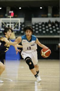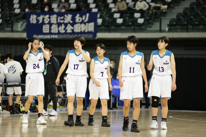 前半は、191㎝の♯18ユサフ・ボランレ・アイシャットを擁する京都精華学園中の前に20‐47と大きくリードされたSHIKISHIMAだが、野田は得意の3Pシュートで奮闘。そして、そんな野田とともにただ2人の3年生であるキャプテン♯11大柴沙和や、2年生の♯17末木わかも躍動したSHIKISHIMAは、後半に持てる力を存分に発揮する。3Qは20‐21と肉薄し、4Qは19‐14とリードした。