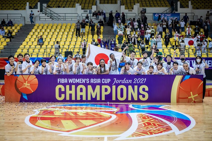 昨秋のFIBA女子アジアカップ2021で優勝した日本代表。新たな顔ぶれで大阪でのワールドカップ予選に臨む(写真/©fiba.asiacup2021)