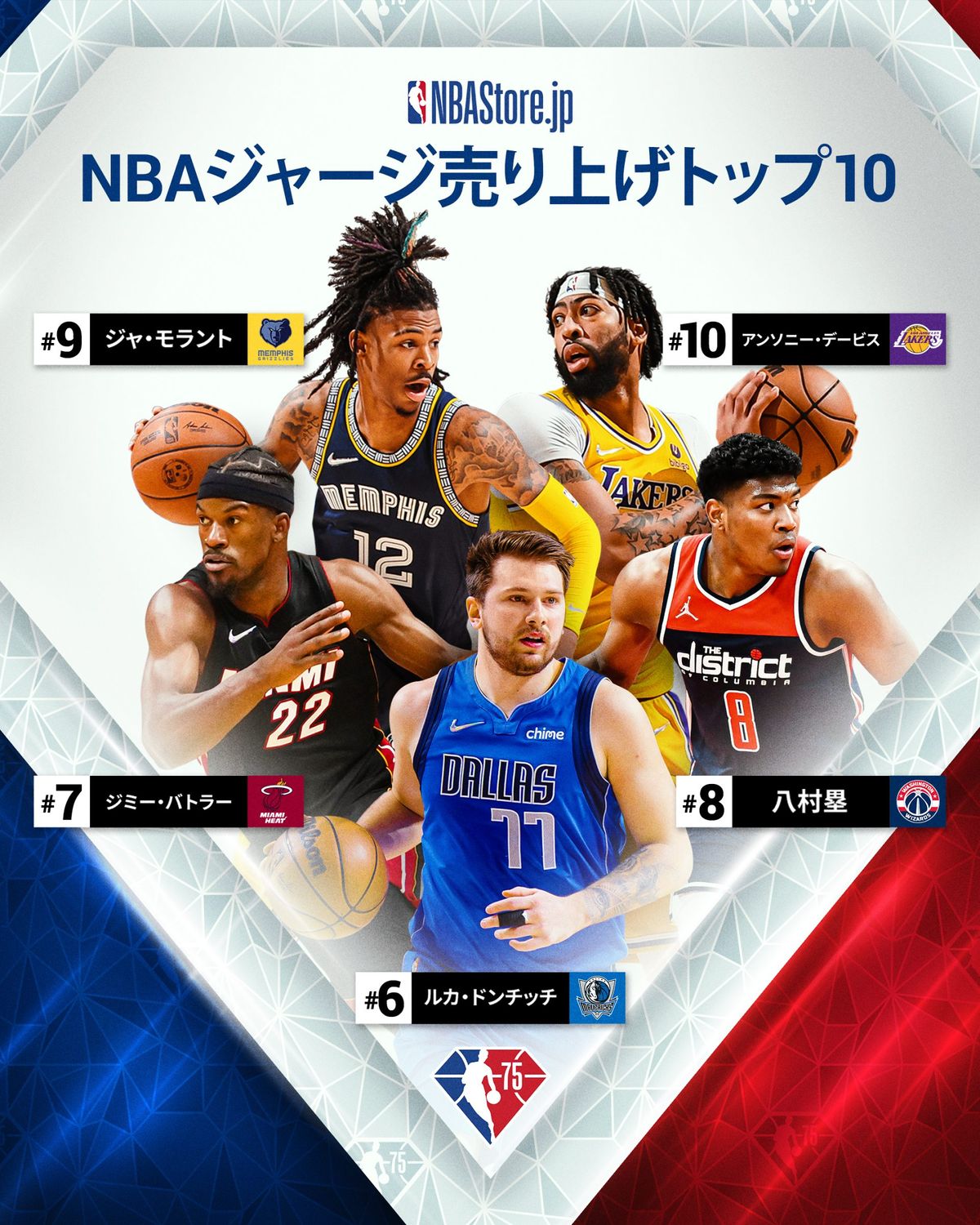 このランキングはFanatics社が運営する日本のNBA公式オンラインストアにおける2021-22 NBA シーズン前半(2021 年 10 月 20 日から 2022 年 1 月 31 日まで)の売上データに基づくもので、渡邊雄太(トロント・ラプターズ)のジャージが3位に、八村 塁(ワシントン・ウィザーズ)のジャージが8位にそれぞれランクインしている。全体として、日本国内の売上はやはり日本人プレーヤーの人気は絶大。渡邊は昨年に続く2連連続のランクイン、八村は3シーズン連続でのトップ10入りとなった。また、渡邊所属のラプターズのグッズは、チームランキングでもトップ5入りしている。
