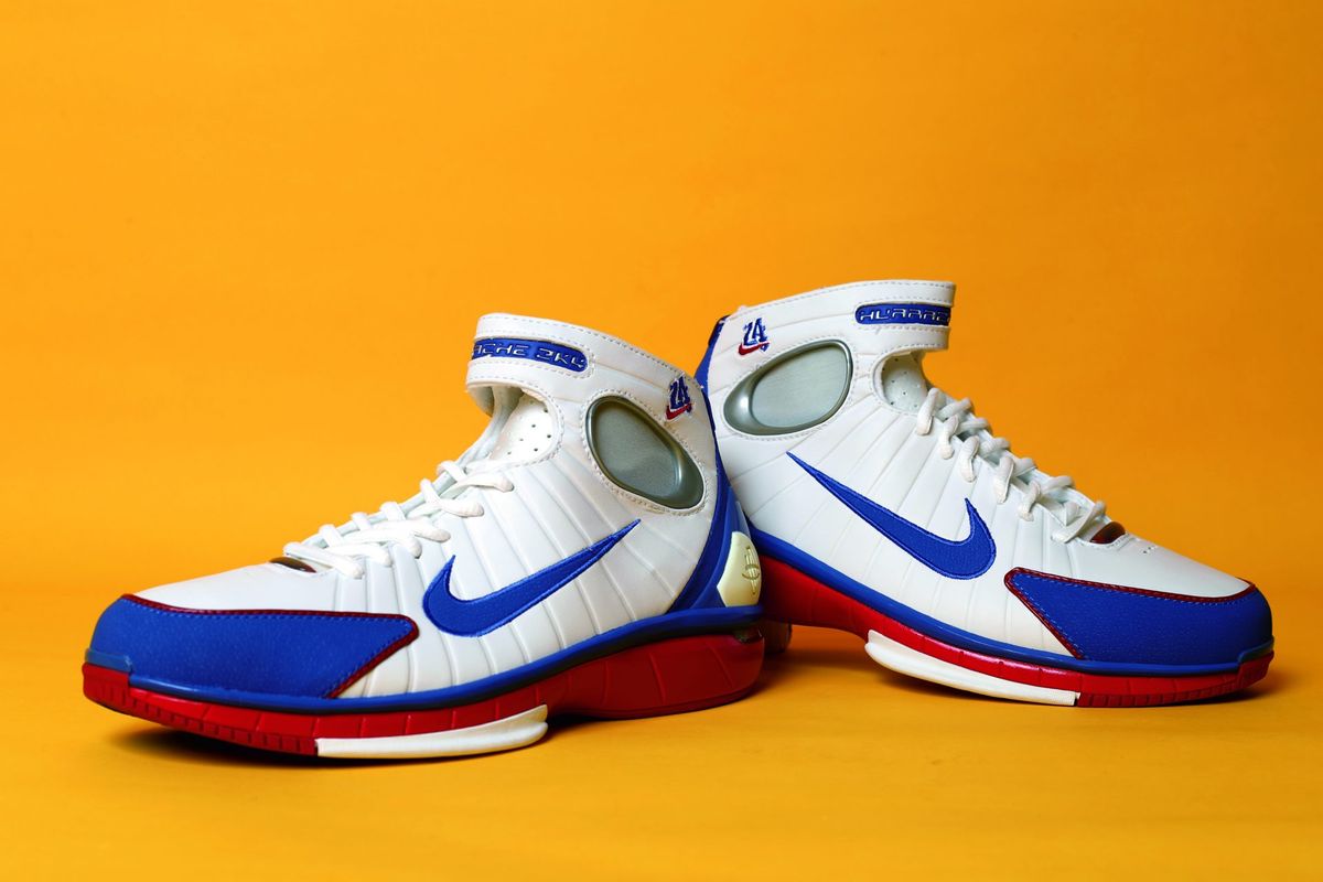 Vol.4 Nike Air Zoom Huarache 2K4 All Star ナイキ エア ズームハラチ SK4 オールスター 文=岸田 林 ★ナイキが用意した初のコービモデル 2003-04シーズンのNBAは世代交代の年だった。前年の02-03シーズンはさながらマイケル・ジョーダン(当時ウィザーズ)の“引退興行”の様相を呈していた一方で、彼と入れ替わるように、ドラフトではレブロン・ジェームズ(現キャバリアーズ)、カーメロ・アンソニー(現サンダー)、ドウェイン・ウェイド(現キャバリアーズ)ら将来のオールスター選手たちが数多くプロ入りし、頭角を現しはじめていた。 この年レイカーズは2年ぶりの優勝を狙うべく、ゲイリー・ペイトン(元ソニックスほか)、カール・マローン(元ジャズほか)のベテラン2名を補強。万全の体制でシーズンに臨んでいた。ところが、コービー・ブライアントにとって、この年は正念場だった。主軸として00年から02年までの三連覇を達成したものの、栄誉にあずかるのはチームメイトのシャキール・オニール(元レイカーズほか/以降シャック)ばかり。前年はシャックの負傷欠場もあり、個人としては平均30.0得点を残し過去最高と呼べるシーズンだったが、チームが4連覇を逃したことで自己中心的にも見えるプレイに批判が集まっていた。また悪いことに、この時期プライベートでのスキャンダルが大きく報じられ、彼の好青年としてのイメージが一気に悪化(後に裁判で和解している)。“ポスト・ジョーダン”としての地位も危ぶまれた。 コービはまた、シューズ契約でも問題を抱えていた。00年、初めてNBAファイナルに進出した彼が着用していたのは、プロ入り前に契約したアディダスの「THE KOBE」。ジョーダンがそうであったように、翌年はコービも新しいシューズでプレイするはずだった。だが当時、アディダスとの間でシューズづくりについて意見の相違があったため、翌01年のNBAファイナルでも「THE KOBE」を、さらに02年も申し訳程度にレイカーズカラーを取り入れた同モデルを着用。結局このカラーは市販すらされず、シーズン終了後、アディダスとの契約終了が発表された。この時点でナイキとの契約は既定路線だったものの、彼の足元はしばらく固定されない状態が続く。02-03シーズン、コービはリーボックの「クエスチョン」や「アンサー4」、ナイキの「エア ジョーダン シリーズ(3、8、11)」の復刻モデルなどを着用していた。 (つづく) 写真=中川和泉 (月刊バスケットボール2017年4月号掲載)