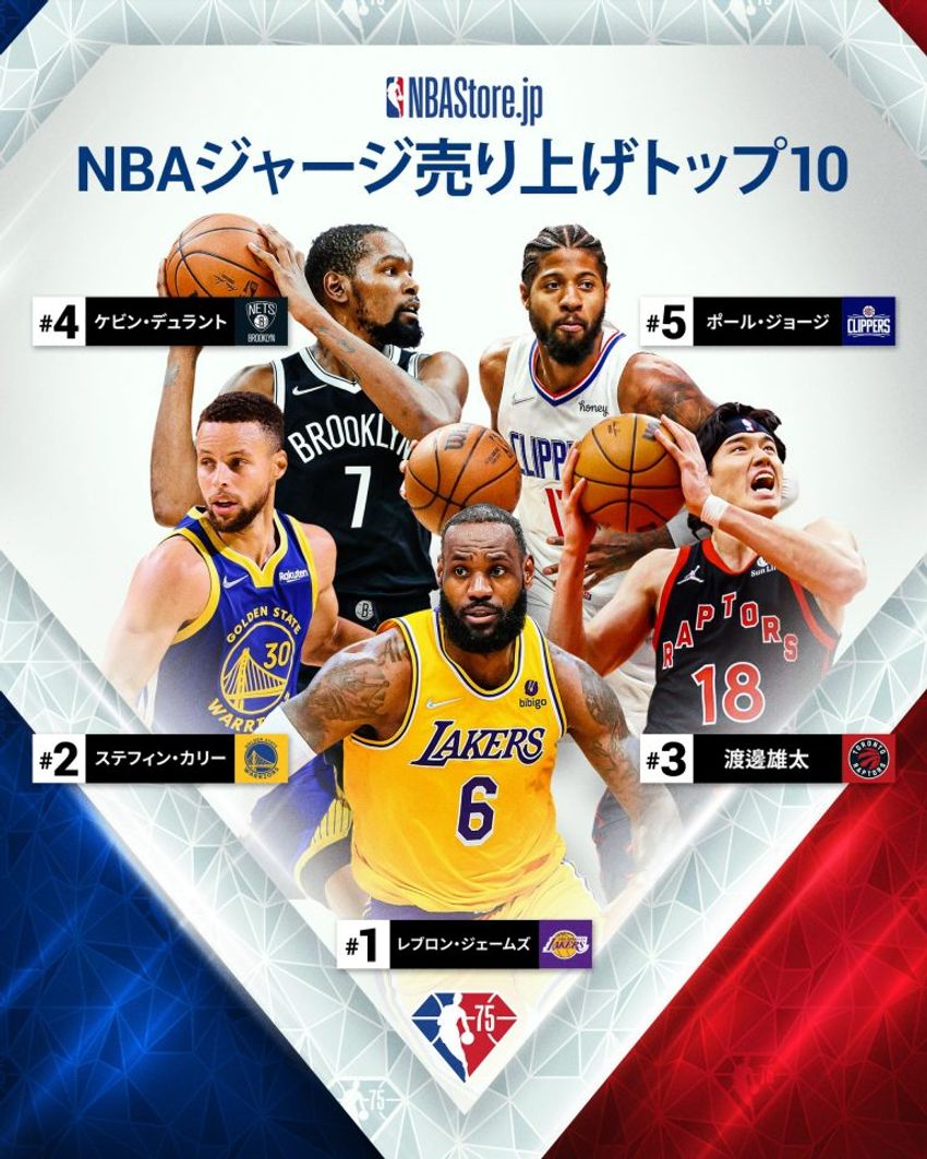 The player with the biggest jersey sales in Japan was LeBron James of the Los Angeles Lakers, who was followed by Golden State Warriors guard Stephen Curry and Watanabe. Both James and Curry made the top five for the fourth consecutive years. And they are the same 1-2 finish as the US sales ranking.