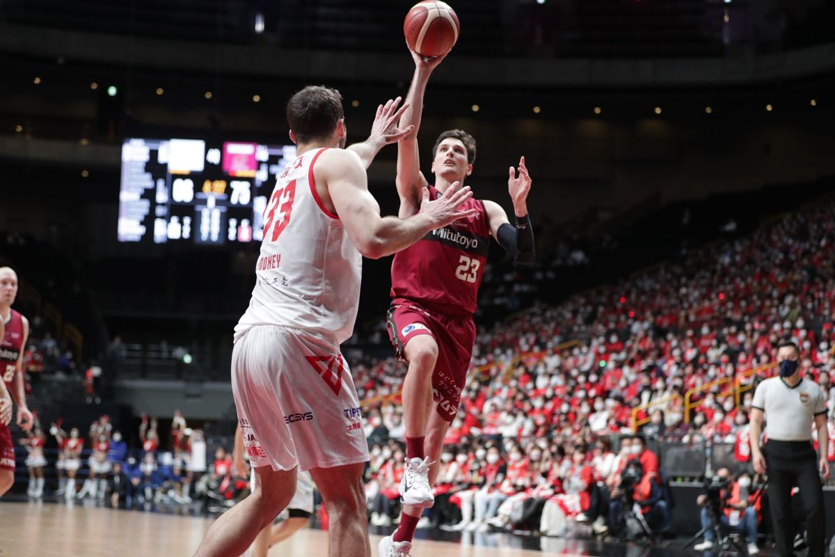 「後半はビッグラインナップでスタートして、序盤はいい戦いができていたと思います。そこから千葉が連続得点で点差を縮めてきたところで佐藤HCから『マット、交代してくれ』と言われて試合に入りました。ただ、僕自身は特別なことはしていません。この試合のゲームプランでもあったアグレッシブなプレーは、僕が今季を通してやってきたこと。その中で僕がフリースローなどで得点するチャンスがありました。そこで点を取るのが自分の仕事ですし、できるだけ相手の流れを断ち切りたいと思っていました。向こうに少し点差を縮められてしまいましたが、最終的にはほぼトントンに戻すことができたし、4Qには再び13〜15点差くらいに戻せたので、3Qで自分がしっかりと仕事ができたのは良かったと思います」