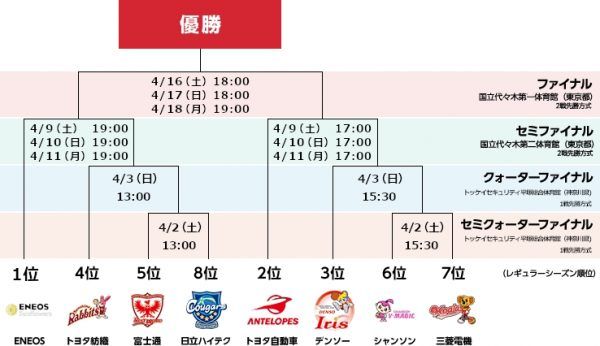 Wリーグの2021-22シーズン・プレーオフが4月2日(土)よりスタートする。レギュラーシーズンの上位8チームによるステップラダー方式のトーナメントで、今シーズンのチャンピオンを決定することになる。