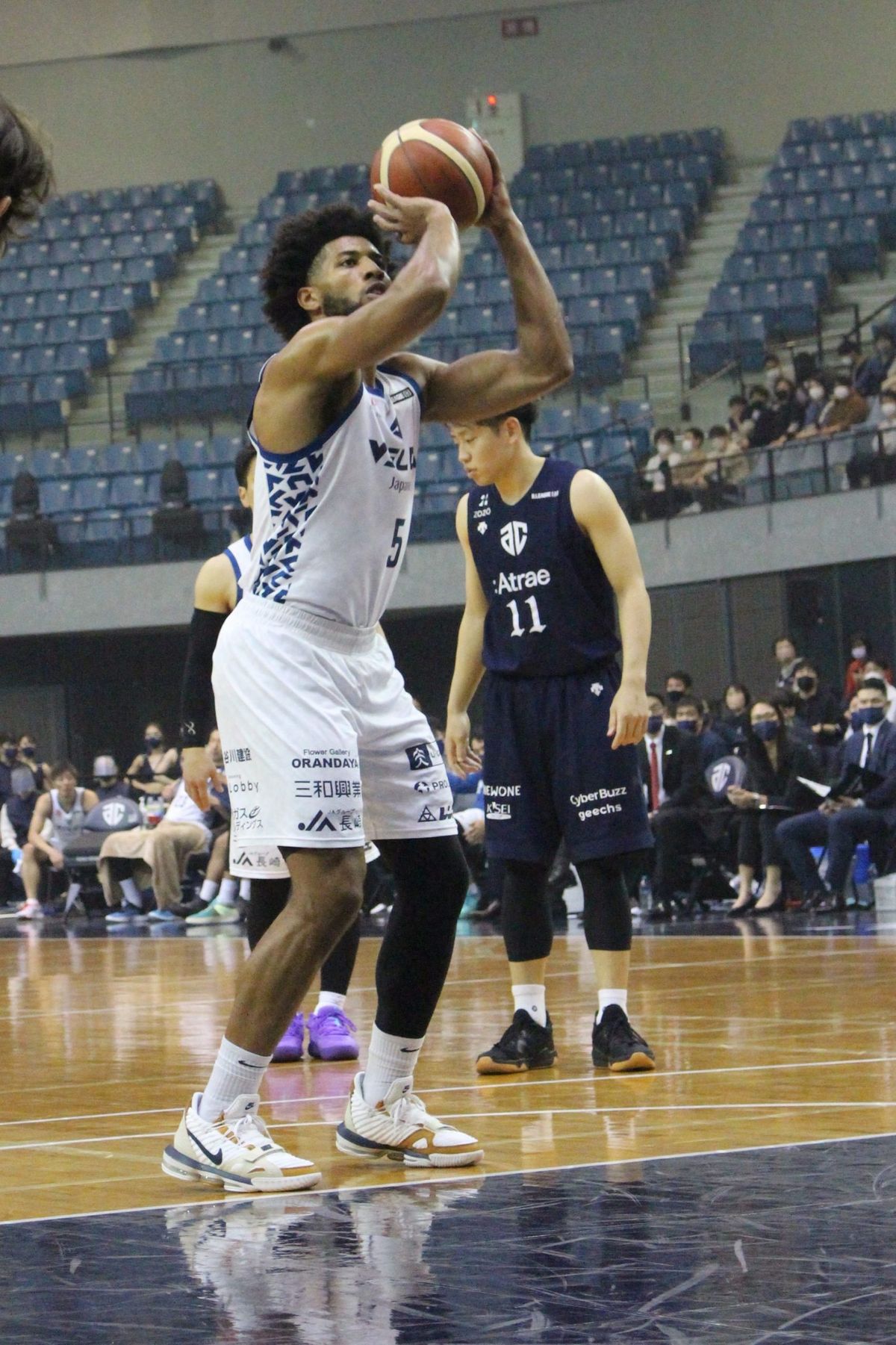 長崎からは他にも、年間ベスト5にポイントガードの狩俣昌也とパワーフォワードのジェフ・ギブスが選ばれた。狩俣は3P成功率44.7%(199本中89本成功)が、ギブスはフリースロー成功率85.4%(151本中129本成功)が、ともにリーグ2位の好成績だった。両者ともベテランらしくリーダーシップを発揮する場面も多く、ボンズとともにチームを優所いうに導いた立役者の一人だ。