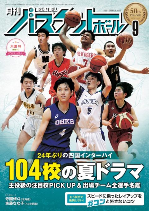 巻頭特集24年ぶりの四国インターハイ104校の夏ドラマ主役級の注目校PICK UP・男女出場チーム全選手名鑑・組み合わせ&スケジュール、選手直筆アピールポイント【ピックアップチーム 男子】・仙台大明成・開志国際・中部大第一・福岡第一・正智深谷・八王子学園八王子・北陸学院・洛南・柳ヶ浦・羽黒/東海大付諏訪・桜丘/阪南大・広島皆実/尽誠学園・柴田学園大附柴田学園/一関工/能代科学技術・市船橋/実践学園/大阪桐蔭・九州学院/小林/美来工科【ピックアップチーム 女子】・桜花学園・京都精華学園・明星学園・大阪薫英女学院・柴田学園大附柴田学園・千葉経済大附・鵬学園・岐阜女・東海大付福岡・札幌山の手/湯沢翔北・盛岡白百合学園/仙台大明成/山形中央・八雲学園/浜松開誠館・近江兄弟社/大阪桐蔭・奈良文化/広島皆実・聖カタリナ学園/熊本商技術もう試合で後悔しないスピードに乗ったレイアップをガコンと外さないコツジュニア8月開催!月バスカップ 選手名鑑アイドル×バスケ大園 玲 (櫻坂46)女子日本代表■三井不動産カップ 試合レポート■東藤なな子 インタビュー大学生■全日本大学新人戦男子優勝:大東文化大/女子優勝:白鴎大NBA■注目ルーキー紹介■FA・トレード情報■スーパースター漫画ヒストリーvol.33 ジェイレン・ブラウン(セルティックス)Bリーグ&Wリーグ■神田れいみのタイムアウトwith寺園脩斗(レバンガ北海道)■東藤なな子インタビュー■篠山センセーの上手くなりたきゃ、考えろ!vol.25技術&戦術&指導者■まんがバスケットボール戦術事典14■「極める」NBAセットプレー図鑑79 レポート&コラム&トピックス ・インターハイ 都道府県予選&ブロック大会結果・BASKET×CULTURE・プレゼント・UP BY 1・JBPA通信・「視点」 佐藤久夫・GAME & NOTE・TOPICS & INFORMATION・イスバスTIME・ENEOSクリニック・次号予告