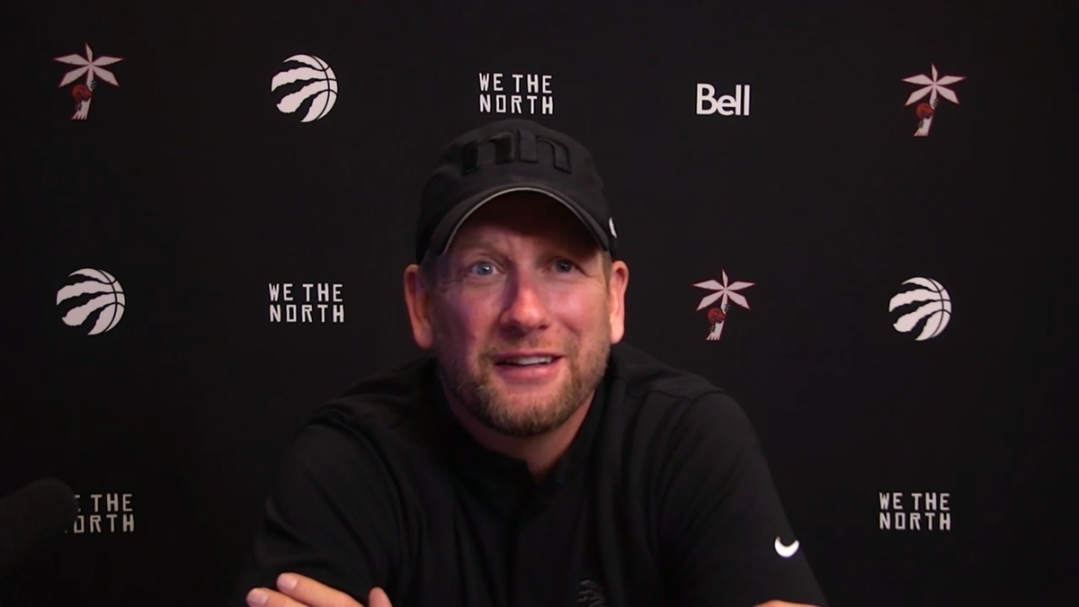 対ウィザーズ戦試合前会見でのナースHC。日本人対決が実現しないことを残念がっていた(写真をクリックするとインタビュー映像を見られます)
