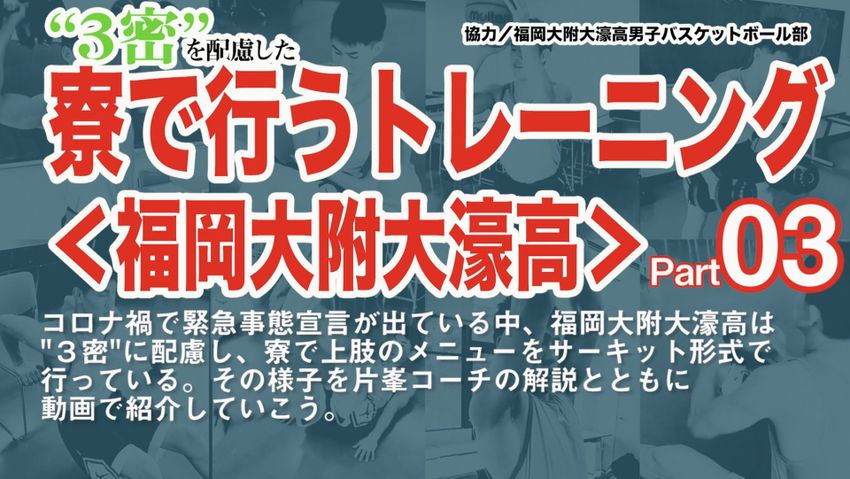 ★コロナ禍で緊急事態宣言が出ている中、福岡大附大濠高は"3密"に配慮し、寮で上肢のメニューをサーキット形式で行っている。その様子を片峯コーチの解説とともに動画で紹介していこう(全9回)。